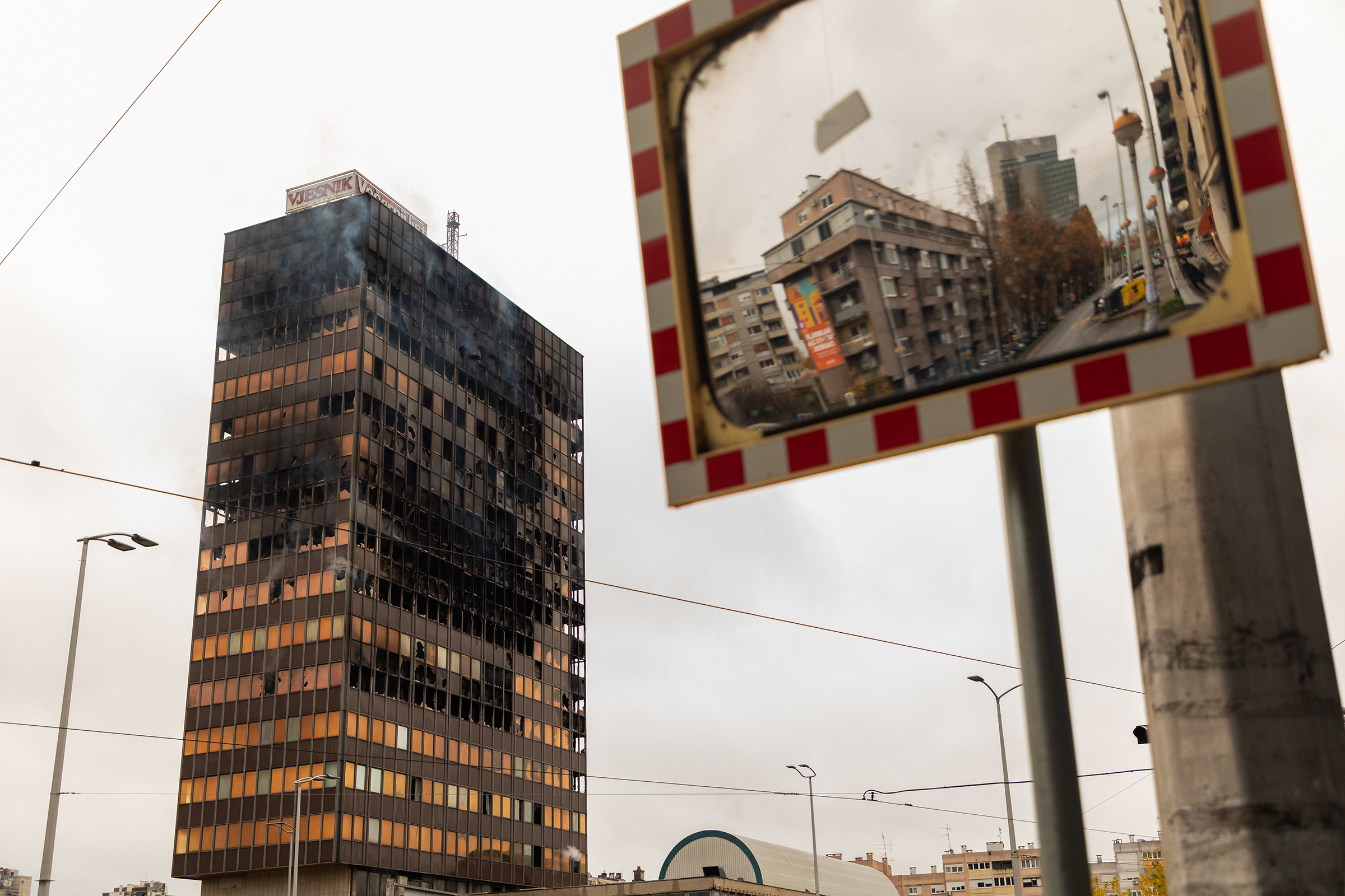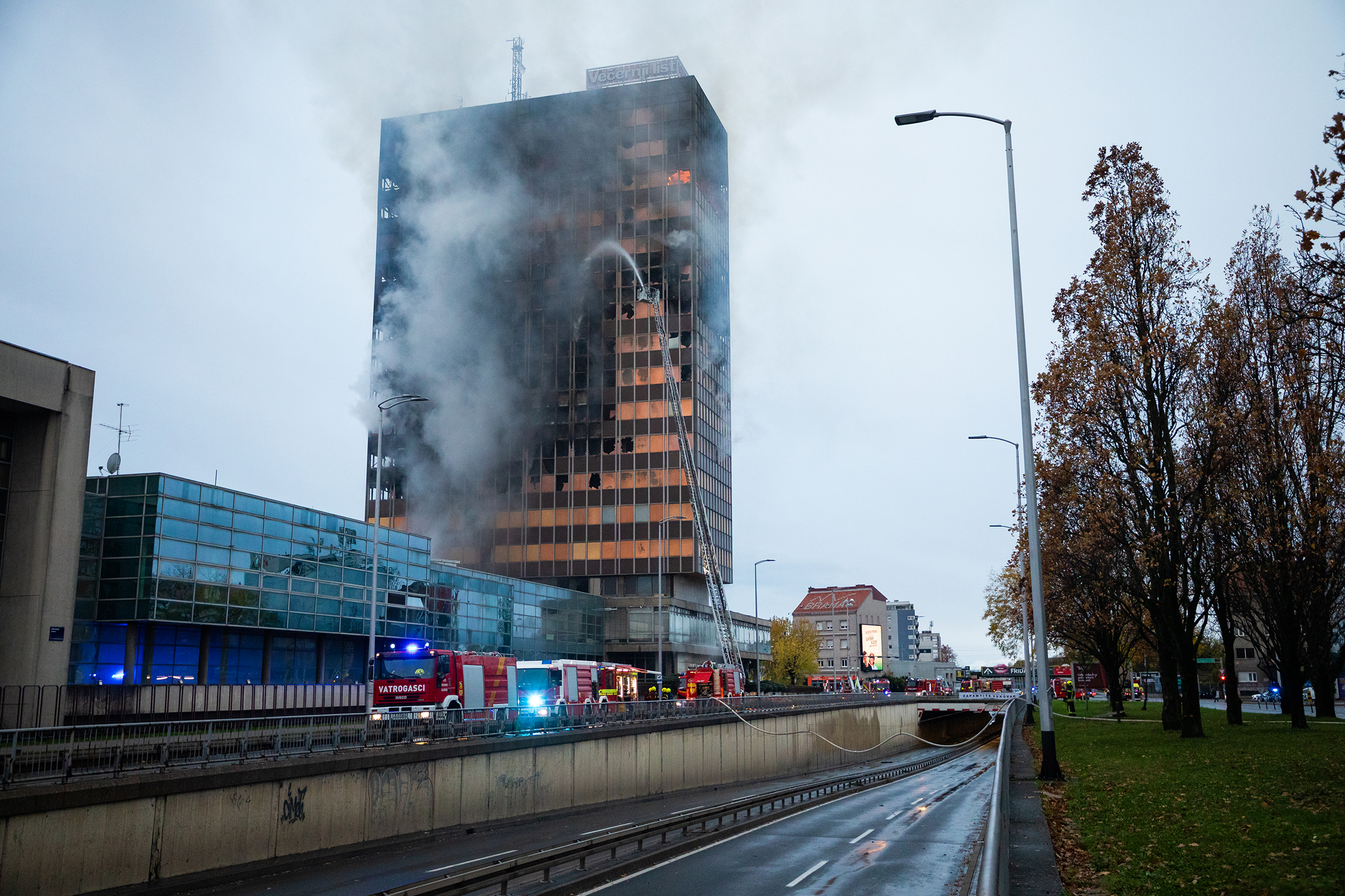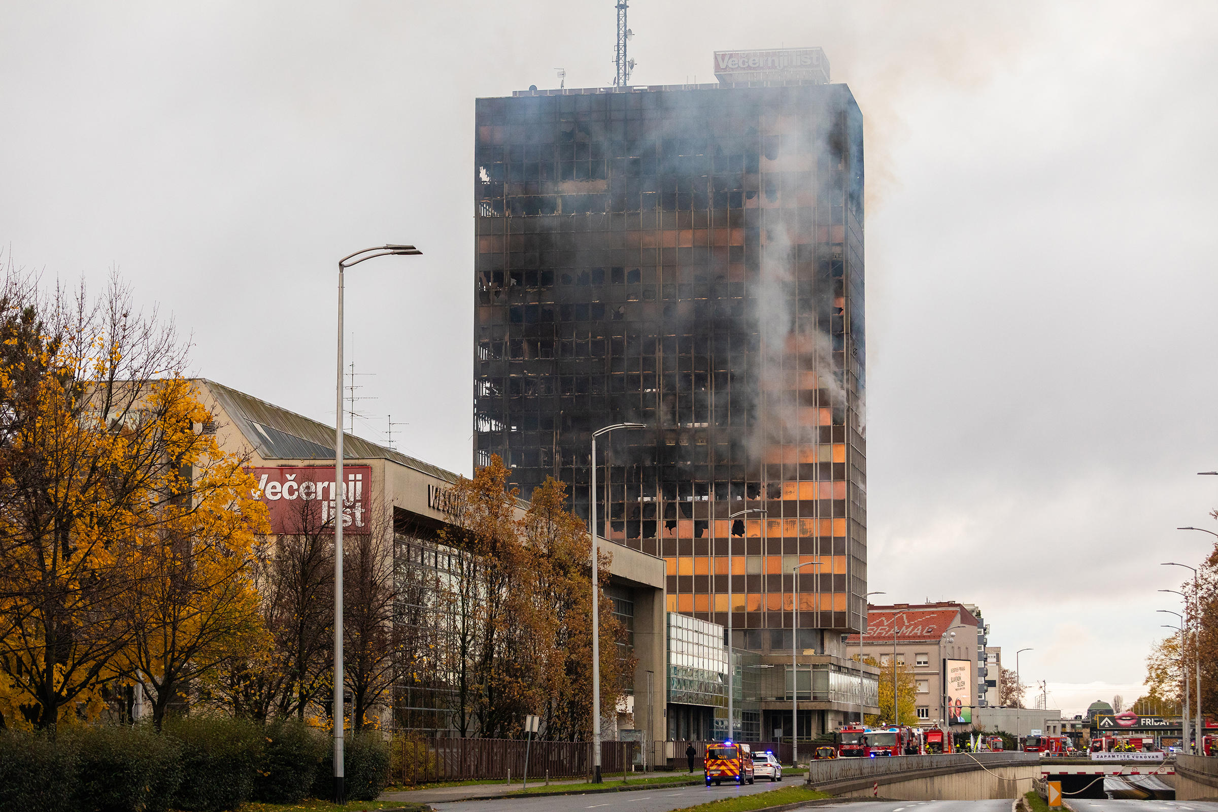 U ponedjeljak, 17. studenog, oko 23 sata planuo je požar u Vjesnikovom neboderu koji se brzo širio prema vrhu zgrade i zahvatio više katova te krovište. U gašenje je bilo uključeno mnogo vatrogasaca i tehnike, a uzrok požara zasad nije poznat.